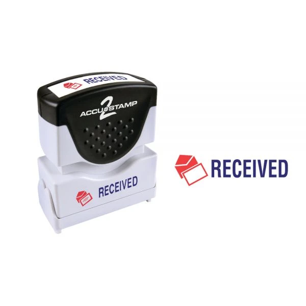 ACCUSTAMP2 Pre-Inked Shutter Stamp, Red/Blue, RECEIVED, 1.63 x 0.5 – Unique dust cover automatically opens and closes while stamping. Microban® antimicrobial protection works continuously to inhibit the growth of stain- and odor-causing bacteria. Ergonomic rubber grip. Up to 50,000 impressions.