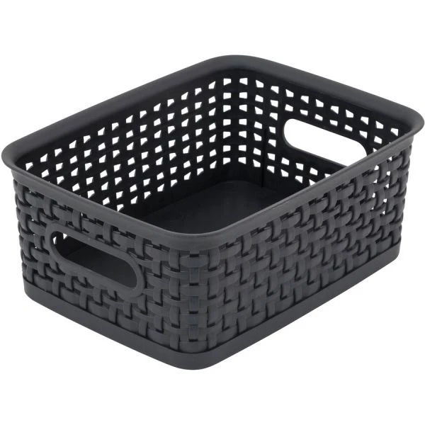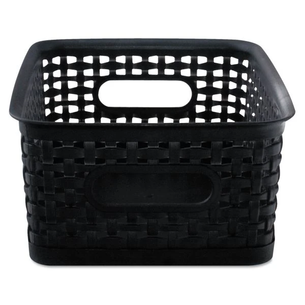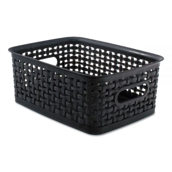 Advantus Weave Bins, 9.88 x 7.38 x 4, Black, 3/Pack – Attractive black baskets with woven design will get your workspace organized. Great for storing all sorts of items including CDs, DVDs, office supplies and more. Sturdy plastic construction. Comes in a multi-pack with one small, one medium, and one large.