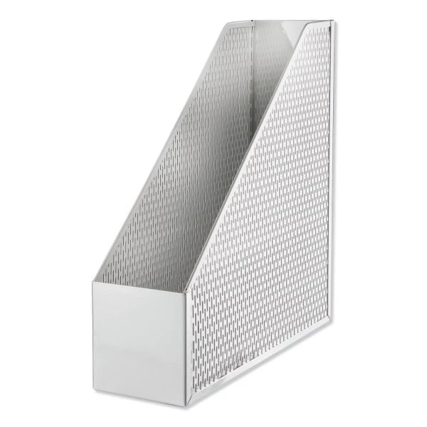 Artistic Urban Collection Punched Metal Magazine File, 3.5 x 10 x 11.5, White – Strong, professional grade punched metal with decorative urban style slotted pattern. High quality satin finish complements any décor. Features protective feet to prevent wear and scratches on the desktop surface. Reinforced rounded edges provide durability and attractive detailing. Securely displays and organizes magazines, catalogs, files and literature on your desktop, keeping them within reach. The generous front panel provides four-sided base protection and structure to the contents so they won’t fall out.