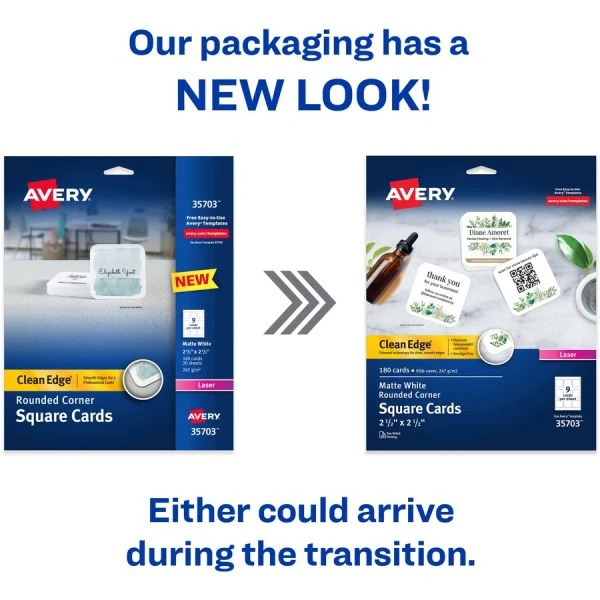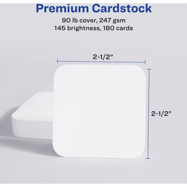 Avery Avery Square Cards w/Rounded Edges, 2.5″x2.5″ , 90 lbs. 180 Laser Cards – Create business cards, tags, RSVP cards and more using these printable square cards with rounded corners. These versatile blank cards can be printed on both sides of the sheet. With Avery Clean Edge technology, the edges of each card are carefully die-cut to create the smoothest, cleanest edge of any printable card available. Each square card measures 2-1/2″ x 2-1/2″ with curved corners that help avoid snagging and creasing. Each sheet of cards is designed to be compatible with laser printers. Whether you’re starting with your own design or creating an idea from scratch, Avery Design and Print makes it simple to make personalized cards from your office or your home. Free online Avery software includes all of the tools you need to design message cards, gift tags, appointment reminder cards and more. Each sheet includes nine cards.