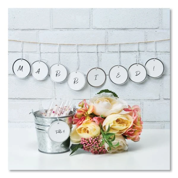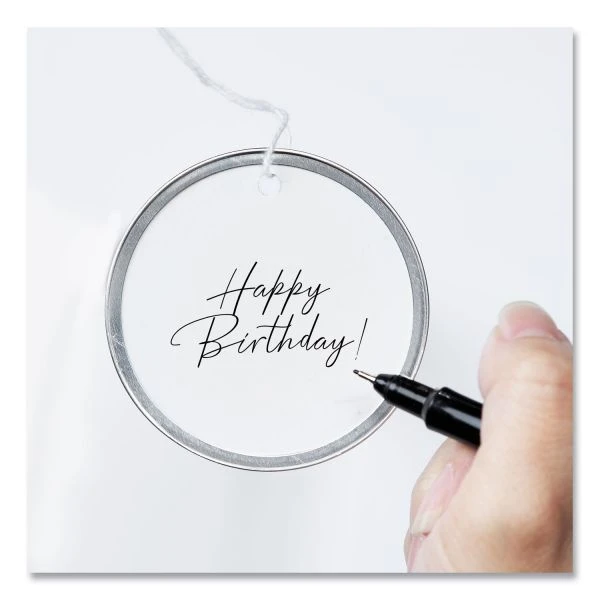 Avery Heavyweight Stock Metal Rim Tags, 2.25″ dia, White, 500/Box – Metal Rim Tags are made of white cardstock with a rim of durable metal. The cardstock provides a smooth, clean surface for writing, while the nontarnish metal rim reinforces the tag to keep it from bending, twisting or tearing, making the tags ideal for situations where they will be handled frequently or roughly. The knotted white string lets you easily attach the tag to your item and remove the tag without tying and untying.