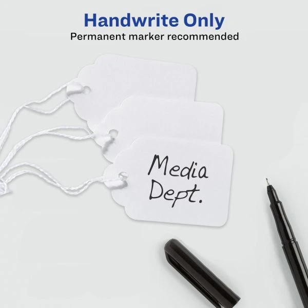 Avery Medium-Weight White Marking Tags, 3.25 x 1.94, 1,000/Box – Marking tags offer a smooth surface for writing to make it simple to label items with important information. Cardstock tag is durable for long-lasting use. A convenient string lets you tie the tag to whichever item needs to be labeled. The tags’ compact size makes them ideal for marking prices, sizes, ownership or other features for sale or storage. Use marking tags to organize items for sale, distribution, storage or other purposes.