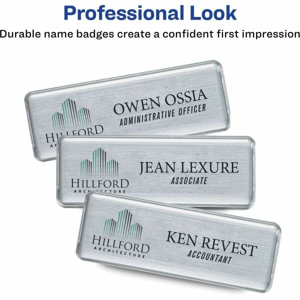 Avery The Mighty Badge Name Badge Holder Kit, Horizontal, 3 x 1, Inkjet, Silver, 4 Holders/32 Inserts – Do-it-yourself employee and event name badges. Quickly and easily customize your badges with these non-adhesive peel off insert sheets and easy-to-use website. Re-usable components for a more cost effective badging solution. Exceptional quality including strong rare earth magnet fasteners. Comfortable to wear. Premium, professional look in minutes.