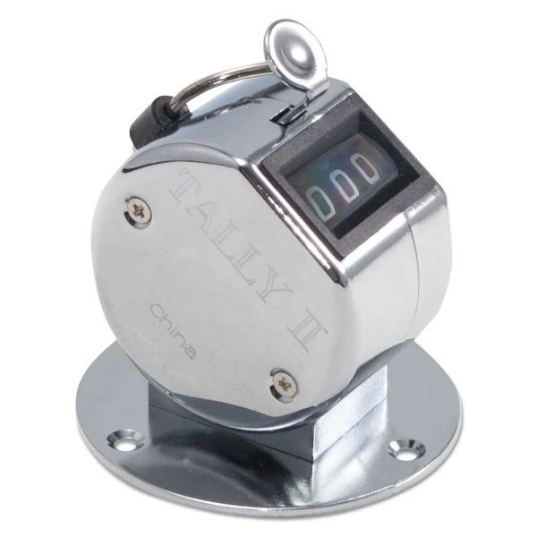 Bates Tally II Desk Model Tally Counter, Registers 0-9999, Chrome – Mount this desk model tally counter to a surface where you need it. Easy to use with a thumb push to advance the count. Counter registers to 9999 and resets to zero. It’s curved to comfortably fit the hand and has convenient finger ring; chrome finish.