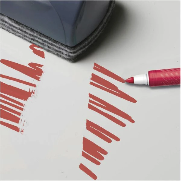 BIC Great Erase Grip Fine Point Dry Erase Marker, Red, Dozen – Intensity Bold Dry-Erase Marker is perfect for use on dry-erase boards, glass and most nonporous surfaces. Modern barrel design offers a rubberized grip for comfort and control. Durable fine point is great for detailed writing that erases easily. Smooth ink flow produces bright, vivid colors. Low-odor, nontoxic ink easily erases with a dry cloth, tissue or felt eraser.