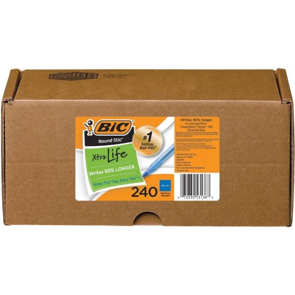 BIC Round Stic Ballpoint Pen Xtra Value Jumbo Pack – Ballpoint pens feature a long-lasting design that writes 90 percent longer on average than the leading competitor. Flexible construction provides writing comfort to help prevent hand fatigue during prolonged writing periods. Tungsten carbide ball ensures reliable laydown for smooth, consistent results. Translucent barrel keeps the ink supply visible to prevent unexpected runout. Ballpoint pens with blue ink are perfect for everyday writing needs at home, school, the office and more.