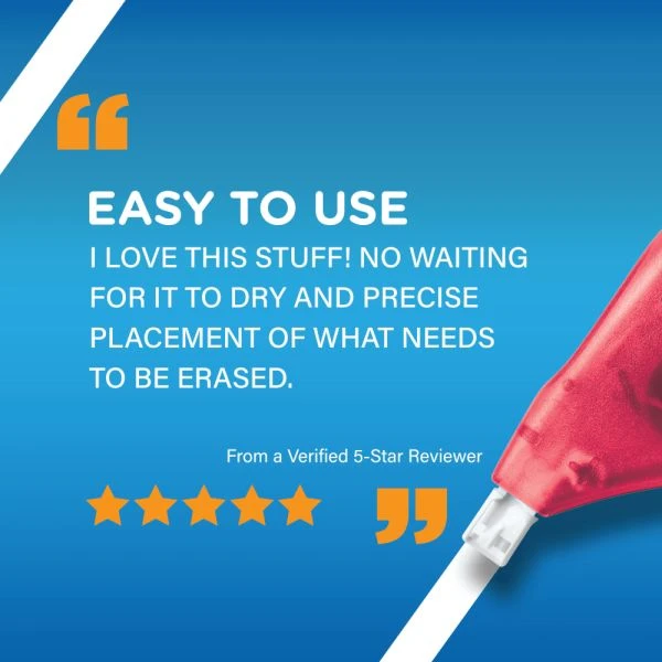 - Single line goes on dry and corrects mistakes instantly with no odor.
