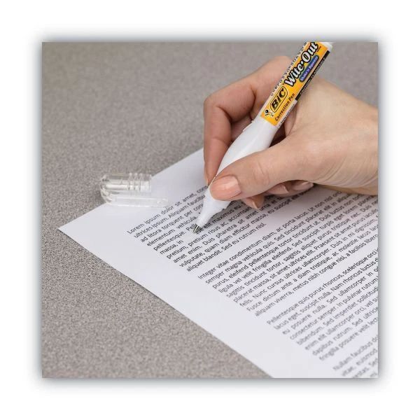 BIC Wite-Out Shake ‘n Squeeze Correction Pen, 8 mL, White, 4/Pack – The BIC Wite-Out Pen is ideal for use in the home, classroom, office and more. It features a needle point tip and a soft squeeze barrel for accurate, controlled corrections each and every time. It dries fast to prevent unsightly drips, smearing and smudges. The Shake ‘n Squeeze white correction pen also provides excellent coverage on all types of paper, and it dries to a smooth finish. It covers photocopies, faxes, ink, permanent markers and more. Easy to use and long-lasting, it making fixing mistakes quick and simple.