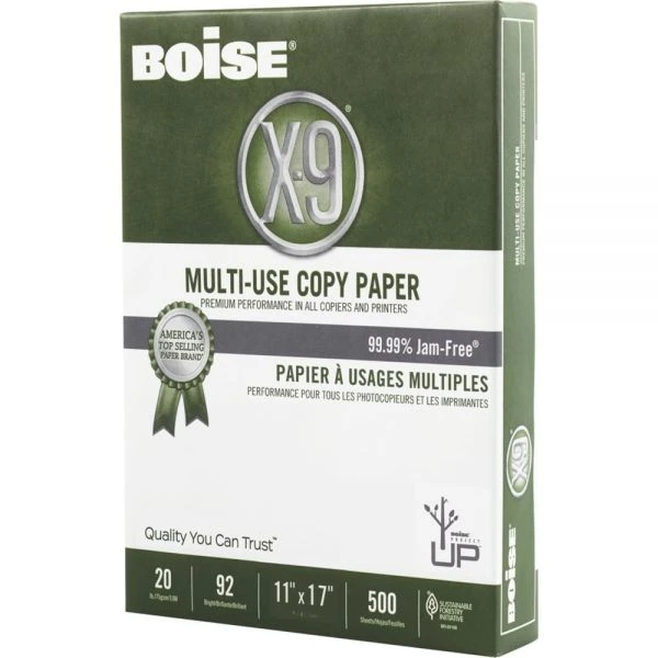 Boise X-9 Multi-Use Printer & Copier Paper, Ledger Size (11″ x 17″), 2500 Total Sheets, 92 (U.S.) Brightness, 20 Lb, White, 500 Sheets Per Ream, Case Of 5 Reams – Help projects go smoothly with Boise X-9 multi-use copy paper. Perfect for everyday copying and printing, this multi-use copy paper offers consistent performance and high runnability, so you can worry less about printer jams and downtime.
