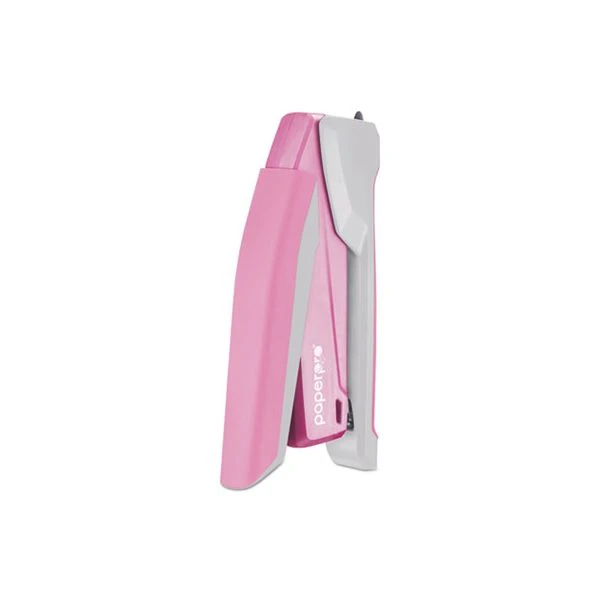 Bostitch InCourage Spring-Powered Desktop Stapler with Antimicrobial Protection, 20-Sheet Capacity, Pink/Gray – PaperPro desktop stapler features a pink trim and pink ribbon emblem to encourage breast cancer awareness. Part of the proceeds from each purchase will go to Cancer Care, a nonprofit dedicated to helping cancer patients and their families. Stapler delivers 30 lb. of staple-driving power with the pressure of one-finger to staple up 20 sheets. Stands vertically to save space. Lightweight design features an ergonomic shape and rubberized, nonslip handle.