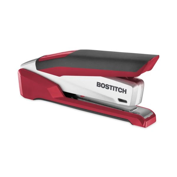 Bostitch InPower Spring-Powered Desktop Stapler with Antimicrobial Protection, 28-Sheet Capacity, Red/Silver – Prodigy Desktop Stapler offers effortless operation, a sleek look and superior performance. Unlike any other stapler, this powerful, patented, jam-free Prodigy makes stapling a breeze at work, home or school. Using just one finger, staple up to 25 sheets of paper – a perfect alternative to bulky, low-effort staplers. The long-lasting, die-cast metal housing is an added bonus to its unique design. The stapler’s alluring metallic red against silver colors makes this office necessity a rich accent to any desk. Ergonomic technology is also conducive to those with arthritis and repetitive stress injuries. 210-staple capacity stapler opens for bulletin board tacking and crafting. It uses PaperPro Premium Standard Staples