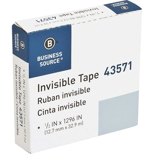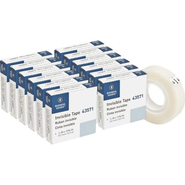Business Source Invisible Tape Refill Roll, 1/2″ x 1296″, 1″ Core, 12/Pack – Premium invisible tape is ideal for mending, splicing, and holding. Tape accepts writing of ink, pencil and marker. 1 core design fits in most desk dispensers. Tape is practically invisible on most surfaces. Tape is photo-safe.”