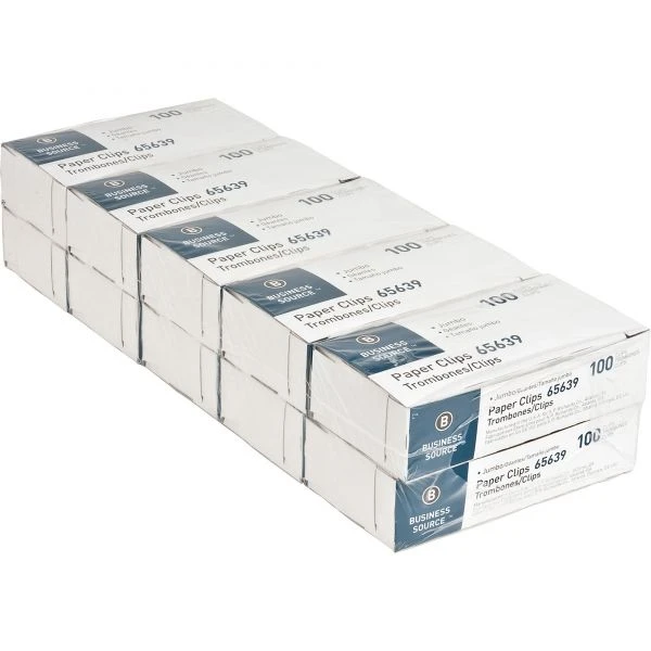 Business Source Jumbo Paper Clips – Jumbo-size paper clips feature an elliptical shape that allows the lighter gauge wire to hold papers together as effectively as most heavier-gauge wire paper clips. They are made of electrogalvanized steel wire. Paper clips are coated to resist rust and corrosion.