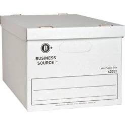 Business Source Light-Duty Storage Boxes With Lift-Off Lids – Light-duty storage boxes offer liftoff lids for easy access. Ideal for storing and transporting files. Each stores letter or legal files. Contains 65 percent recycled material. Offers a 350 lb. stacking weight.