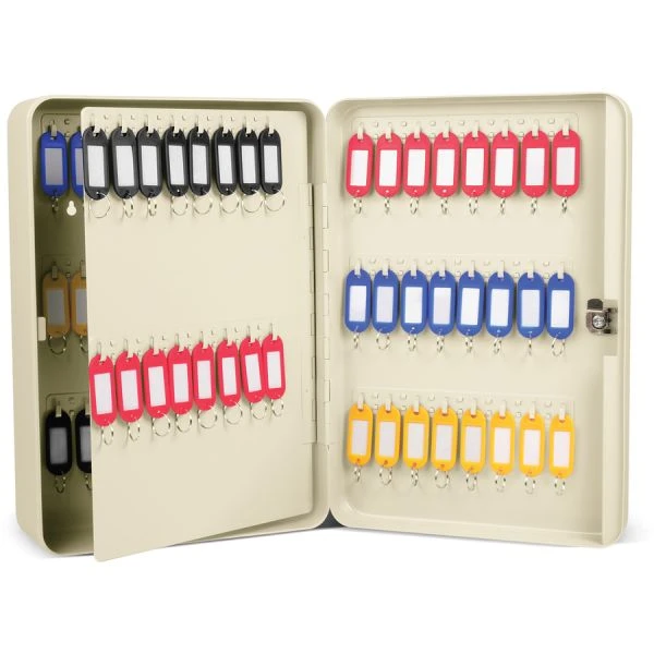 CARL Steel Security Key Cabinet – Key cabinet features a solid steel construction that’s built to last to keep your keys safe and secure. 80 included key tags allow you to label keys to prevent confusion. Wall-mount anchors allow you to easily set up this cabinet in an optimal location. Lockable design keeps everything safely contained to prevent unauthorized access. Key cabinet is designed to hold up to 80 sets of keys.