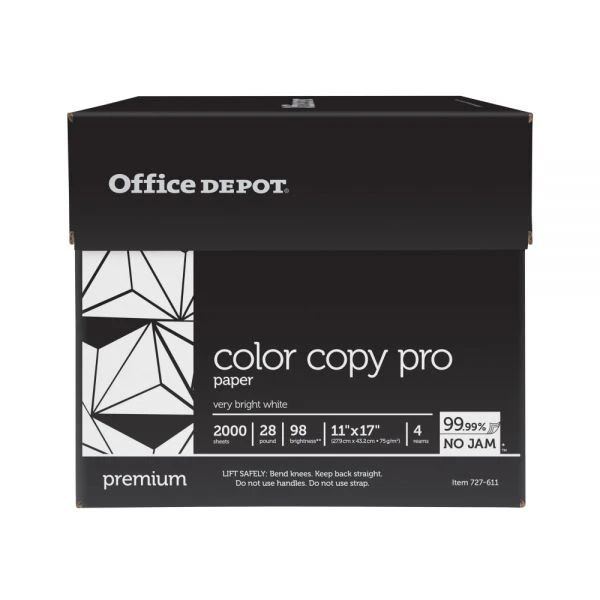 Color Copier Paper, Ledger Size (11″ x 17″), 2000 Sheets Total, 28 Lb, White, 500 Sheets Per Ream, Case Of 4 Reams – Specially designed for use in color copiers, Office Depot color copy paper is ideal for producing documents with bold, vibrant colors. Notice the difference when you hand a gorgeous document on Office Depot paper to a potential client.