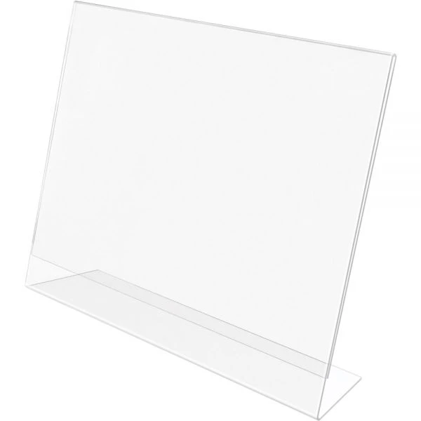 Deflect-o Anti-Glare Slanted Horizontal Sign Holder – Freestanding, anti-glare sign holder features a nonglare, matte finish that reduces shine from light sources and improves visual impact. Scratch-resistant, mar-resistant design is more than 10 percent thicker than classic sign holders for added durability. Clear, durable acrylic holder is tough enough to withstand frequent use. Use a free online sign creator to customize landscape-oriented signs up to 11 wide x 8-1/2″ high. 100 percent recyclable sign holder is clear and slanted for easy visibility.”