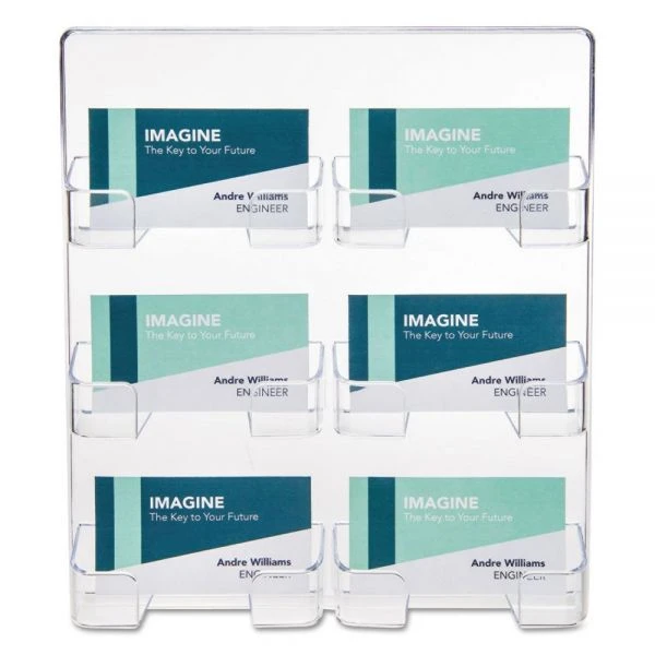 deflecto 6-Pocket Business Card Holder, Holds 480 Cards, 8.5 x 1.63 x 9.75, Plastic, Clear – Make a great first impression and promote your business by keeping your business cards accessible with this 6-Compartment Business Card Holder. It accommodates approximately 80 cards per compartment – perfect anywhere multiple team members cards need to be displayed. Angled, open design allows easy access to your contact information. Holder is ideal for creating an organized and professional desktop or countertop while promoting your business. Made of durable plastic, it is the perfect choice for medical and professional offices, travel agencies, retail outlets, trade show booths and more.