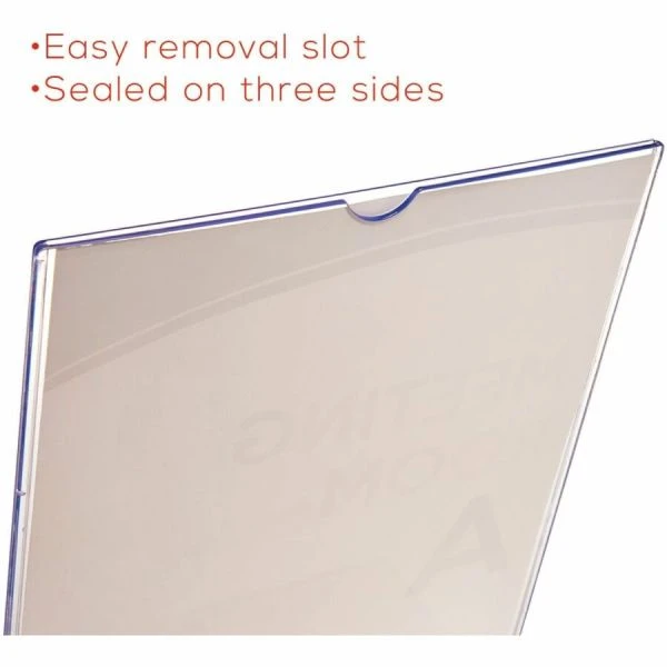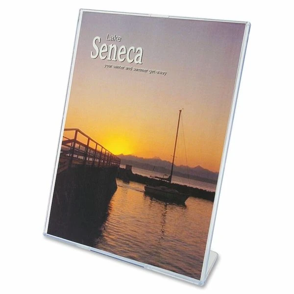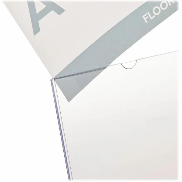 Deflecto Superior Image Slanted Sign Holders – Slanted sign holder with literature pocket saves space while promoting literature. Free online templates are available. Top entry allows easy access to change sign as needed. Sign is sealed on bottom and sides to keep literature from slipping out. Polished edges offer a quality look, enhancing your message. Sign holder is made of clear plastic. Smooth, thick panels offer added durability