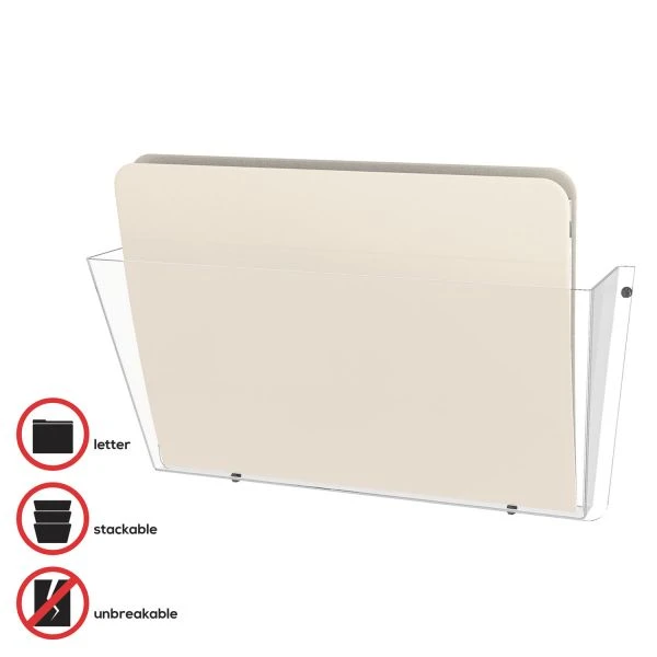deflecto Unbreakable DocuPocket Wall File, Letter Size, 14.5″ x 3″ x 6.5″, Clear – Wall pocket is perfect for holding important documents, file folders, magazines and more. Mount easily with included tape and screws.