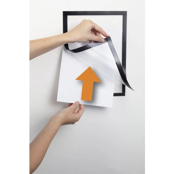 DURABLE DuraFrame Wallpaper – DuraFrame Wallpaper is the ideal solution for displaying information on sensitive surfaces. Attach to wallpaper, wood and most plastics with convenient, removable adhesive strips. Surface must be firm, flat, clean, dry and completely free of grease. Detachable infoframe removes from the surface without leaving any residue or damaging the surface. Four-sided frame works horizontally or vertically. Sturdy cover pulls back effortlessly for speedy insert updates. Anti-glare plastic frame includes a replacement set of four adhesive strips.