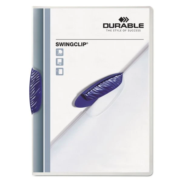 Durable Swingclip Clear Report Cover, Swing Clip, 8.5 x 11, Clear/Clear, 25/Box – These report cover features a uniquely contoured swing closure that allows fast, easy addition or removal of pages, and gives a distinctive professional appearance to documents. Swing closure securely holds up to 30 sheets. Durable wraparound covers are made of heavy-gauge polypropylene to protect contents. Each opens flat for easy viewing of the top sheet. Clips operate smoothly and will not damage paper edges.