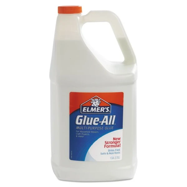 Elmer’s Glue-All White Glue, 1 gal, Dries Clear – Elmer’s All Purpose Glue-All is a strong, versatile, nontoxic glue for most porous materials. Perfect for office, home and school. Easily clean up with soap and water when glue is wet. Glue sets fast and dries to create a clear, lasting bond. Remove and reposition materials before glue sets. Twist-cap squeeze bottle design prevents clogging and drying out. Glue is not recommended for porous materials where waterproof joints are needed.