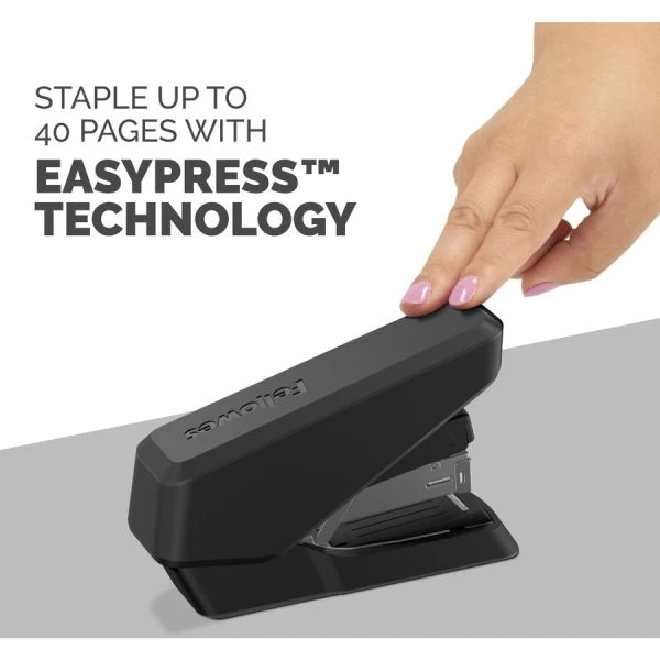 Fellowes EasyPress Half Strip Stapler – Engineered to be effortless and designed to be seen, this LX series stapler is built with quality, durability and function in mind. LX860 EasyPress Half Strip Stapler features Microban antimicrobial technology to help prevent bacteria growth for an added level of protection. Smooth, jam-free performance ensures successful stapling every time. EasyPress technology offers easy stapling up to 40 pages using 1/4″ staples. Each staple clinches flat for a neat, professional finish and easy stacking of multiple stapled documents. Low-staple indicator lets you quickly see when staples are running low. Ergonomic design provides a comfortable stapling experience. Durable stapler holds a half strip of staples and is perfect for home or office use.