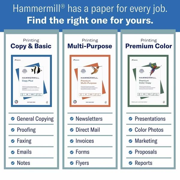 Hammermill Copy Plus Copy Paper, 92 Brightness, 20 lb, 8 1/2 x 14, White, 500 Sheets/Ream – Copy Plus printer paper is an economical paper designed for everyday use at offices large and small. Offering dependable performance on all office machines, you’ll want to have plenty of this dependable paper on hand for everyday, general office use. It works well in high-speed copiers, dry toner plain-paper copiers and fax machines. ColorLok® for bolder blacks, brighter colors and faster drying. Backed by the 99.99% Jam-Free® Guarantee. Acid-free material prevents yellowing over time to ensure a long-lasting appearance. This product was made from wood sourced from a certified managed forest.