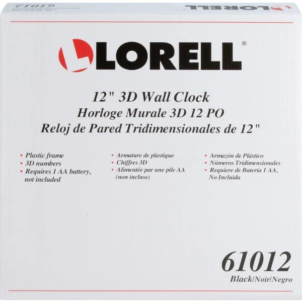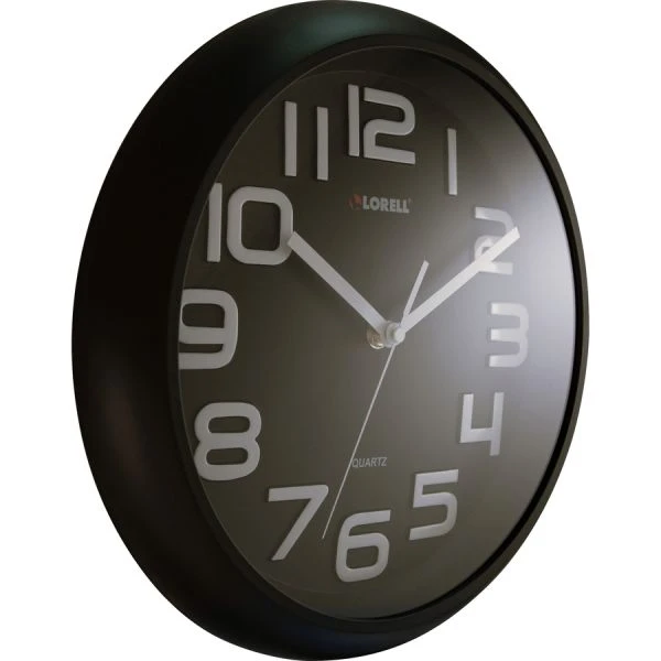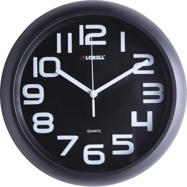 Lorell 11-5/8″ Quiet Wall Clock – 11-5/8″ clock features large, 3D numbers showcased in a slender profile to add eye-catching style to any room. Super-quiet design operates silently for distraction-free use in quiet environments. Battery-operated clock requires one AA battery (sold separately). Clock is perfect for displaying in conference rooms, classrooms, lobbies, waiting areas and more.