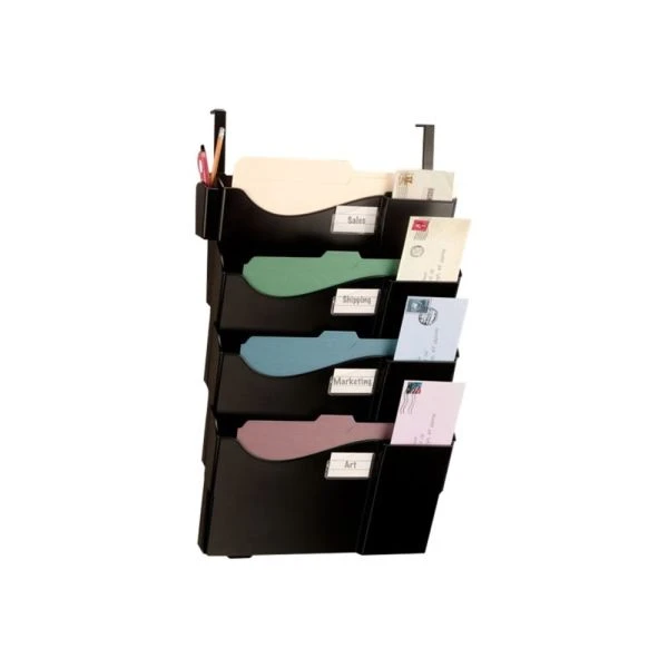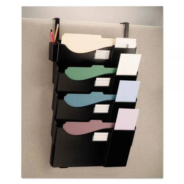 Officemate Grande Central Cubicle Filing System, Four Pockets, 16 5/8 x 5 x 27 1/2, Black – A great organizer for office, cubicle or mail room, this filing system includes a pencil cup and compartment for cards and envelopes for easy retrieval. System may be expanded with Officemate 21722 add-on pockets (sold separately). Includes ID labels for categorizing files. Durable plastic.