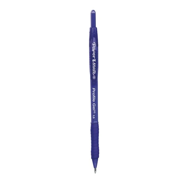 Paper Mate Profile Gel Pen, Retractable, Bold 1 mm, Blue Ink, Translucent Blue Barrel, Dozen – Your favorite ballpoint pen, now available in a gel! Profile Gel offers smooth, effortless writing in bold colors. Featuring a comfort grip for comfort during any writing task.