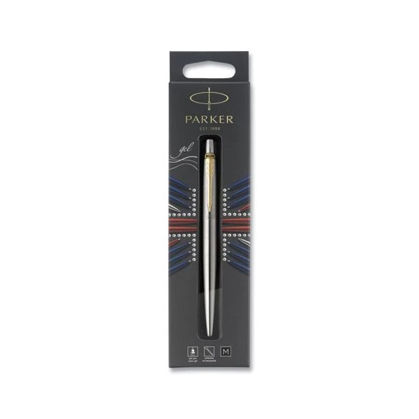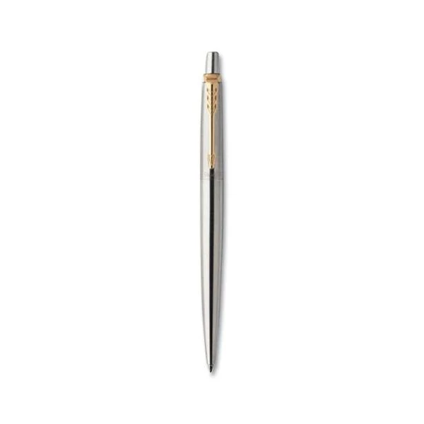 Parker Jotter Rollerball Pen, Medium Point 0.7 mm, Black Ink, Stainless Steel Barrel – Create easy-to-read messages for members of your team with this black ink pen. The medium point size delivers your ideas in bold ink that resists fading, while the retractable design makes this pen easy to use with a simple click. This refillable Parker Jotter rollerball ink pen is made of stainless steel with a gold trim barrel for a firm grip and a pocket clip for convenient carrying.