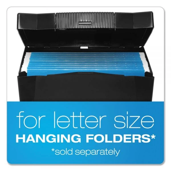 Pendaflex Portable Letter Size File Box, Letter Files, 13.5″ x 10.25″ x 10.88″, Black – If your workload is increasing, here’s just the thing to keep things properly sorted. Holds up to 20 letter-size, 1/2″ capacity hanging folders (not included). Modular design with flip-down handle makes for easy stacking. With integrated dual side grips and latch-locking lid.