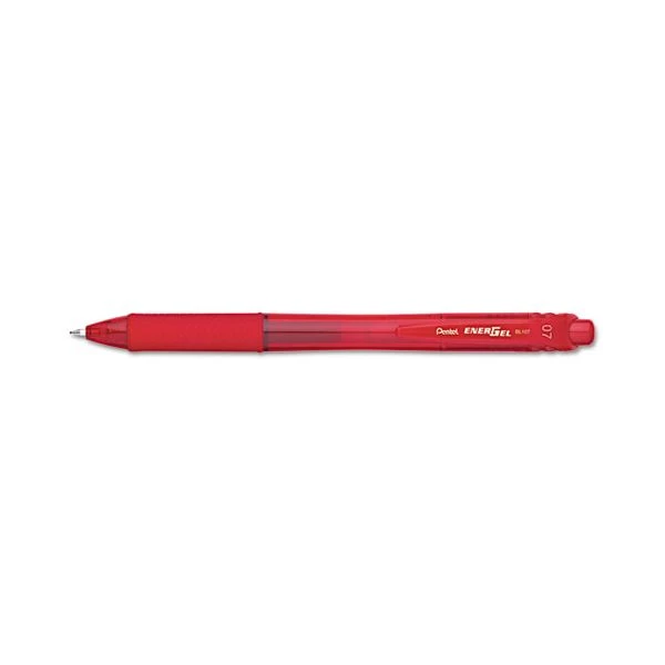 Pentel EnerGel-X Gel Pen, Retractable, Medium 0.7 mm, Red Ink, Red Barrel, Dozen – EnerGel-X Retractable Liquid Gel Pens contain super-smooth EnerGel ink. High-performance ink technology combines the best qualities of liquid and gel inks for a super-smooth writing experience. Liquid gel ink dries so fast that even left-handed writers love it – no smears, no smudges, no globs. Latex-free grip provides maximum comfort. Color-tinted barrels with curved clip design match the ink color. Gel pen is refillable with Pentel’s LR7 refill or any size/color EnerGel refill.