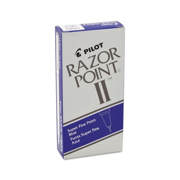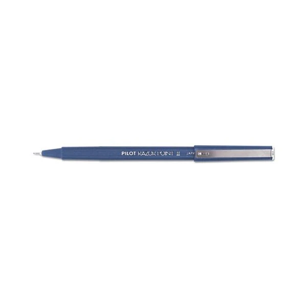 Pilot Razor Point II Super Fine Line Porous Point Pen, Stick, Extra-Fine 0.2 mm, Blue Ink, Blue Barrel, Dozen – Razor Point II Marker Pens are designed to make the thinnest markings and provide long-lasting performance. Super-fine tip is supported by a metal collar. Strong fiber point delivers smooth, vibrant, high-precision writing. Patented, 0.2mm tip design ensures crisp, clean, quick-drying lines. Pens are nonrefillable.
