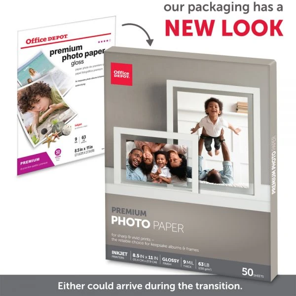 Premium Photo Paper, Gloss, Letter Size (8 1/2″ x 11″), 9 Mil, Pack Of 50 Sheets – Obtain the look and feel of traditional 35mm photographs with this Office Depot Brand photo printer paper. The bright white surface, heavyweight stock and coated finish bring vivid detail to your photos for a professional look.