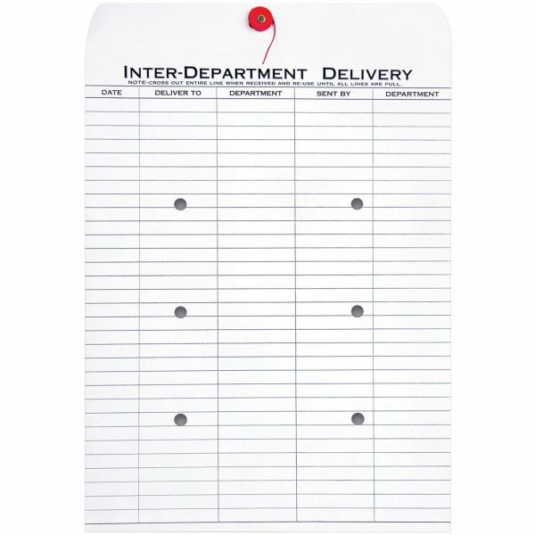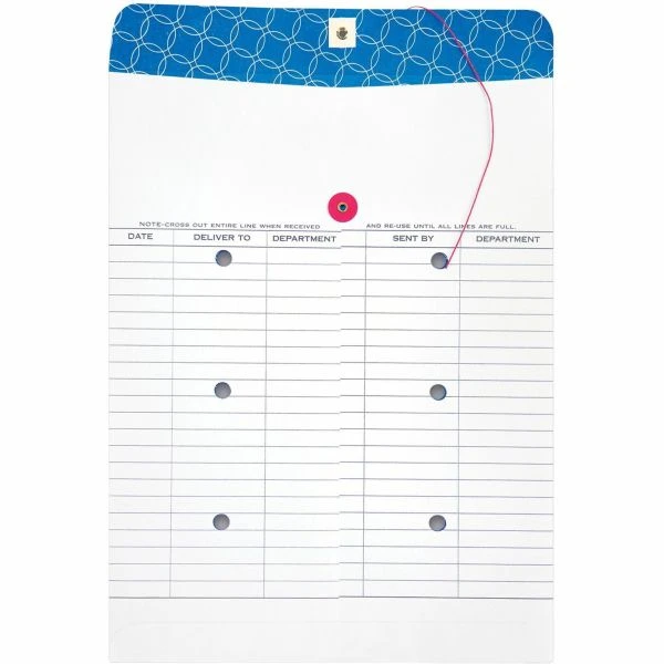 Quality Park Inter-Department Envelope, #97, Two-Sided Five-Column Format, 10 x 13, White, 100/Box – Inter-department envelopes are made with a material that inhibits the growth of mold and mildew to protect the product. Interior security tint protects your privacy. String-and-button closure secures your contents. Envelopes are printed on two sides with space for 52 entries with standard five-column style.