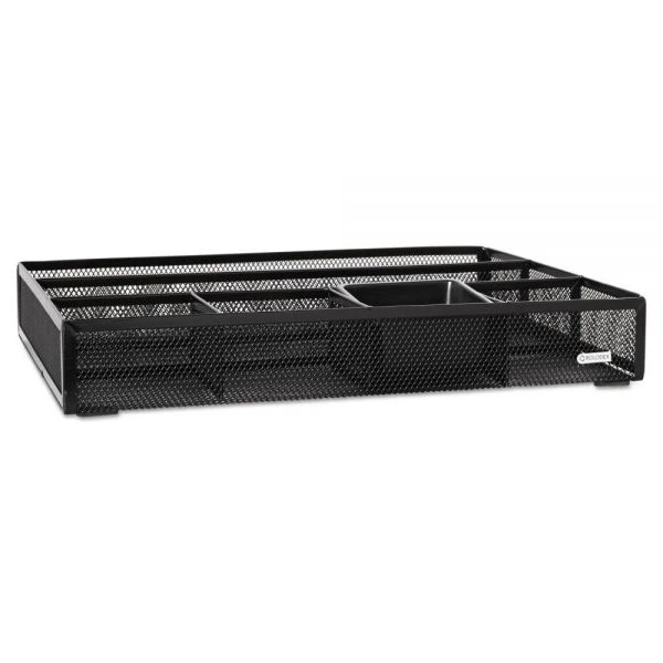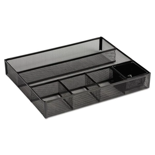 Rolodex Metal Mesh Deep Desk Drawer Organizer, Six Compartments, 15.25 x 11.88 x 2.5, Black – Mesh desk organizer is designed for use in deep drawers. Use two long compartments for rulers, pencils and other items, and four small compartments for paper clips, binder clips, change and other small essentials. Organizer is made of steel. Unique rolled mesh criss-cross design gives your work space a curb appeal all its own.