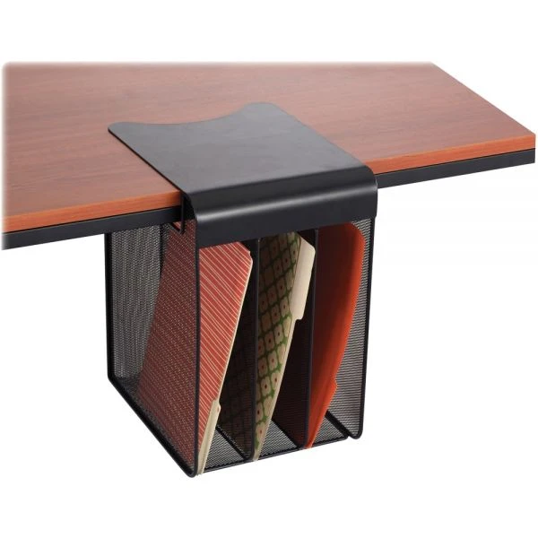 Safco Onyx Hanging Organizer, Solid Top Vertical, 3 Compartments, Steel Mesh, 14.75 x 11.75 x 9.25, Black – Hanging organizer with a solid top provides easily accessible desktop storage whether you are sitting or standing at your desk. It prevents you from excessive bending or reaching to access your storage. Your storage moves with you as you sit or stand. Hanging organizer fits up to 2″ thick desktops and secures with the included rubber-headed tightening screw for secure, nondamaging installation. Steel wire mesh construction features a durable, scratch-resistant, powder-coat finish. Hanging storage includes three vertical sections. Each section is designed to hold not only your active papers and notes but standard-size file folders. Organizer hangs flush with desktop.
