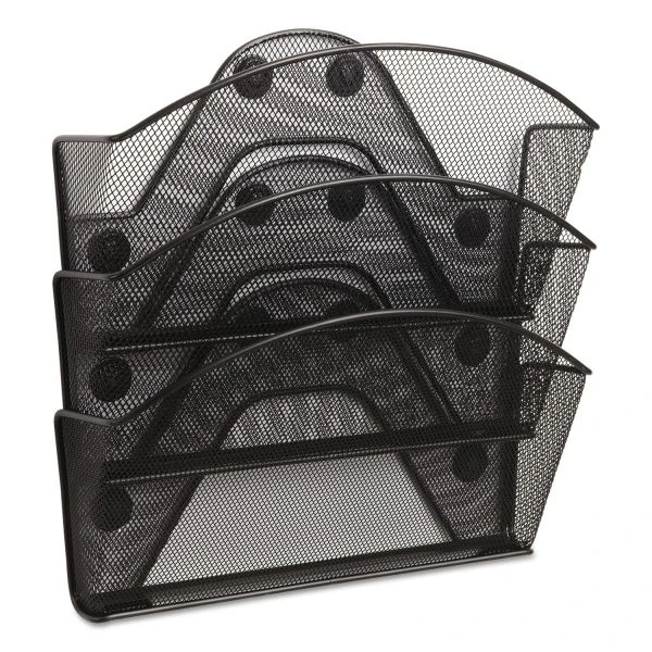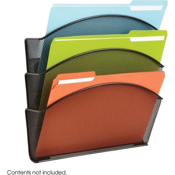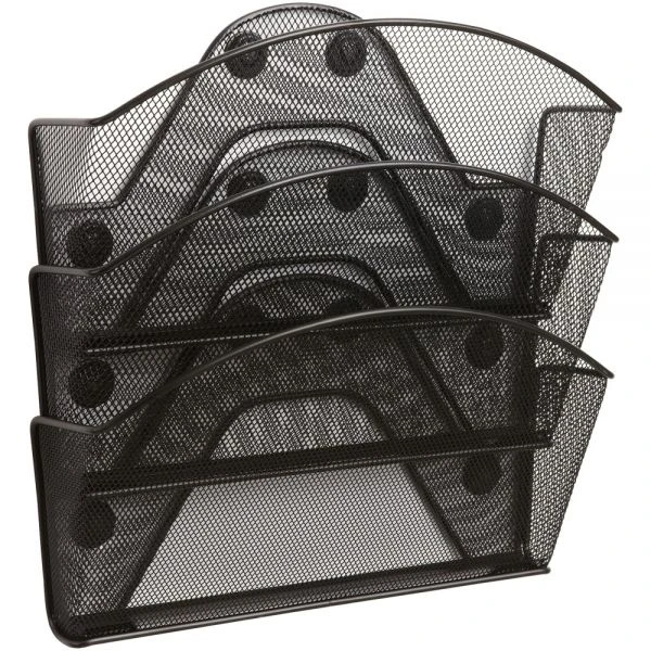 Safco Onyx Magnetic Mesh Panel Accessories, 3 File Pocket, 13 x 4.25 x 13.5. Black – Triple File Pocket is designed for use with cubicle panels. Perfect way to organize your files. Made from steel mesh with four heavy-duty magnets to attach to metal cube surfaces or on most fabric-covered metal panel walls. No need for unsightly over the panel brackets. Triple File Pocket includes steel point fasteners for use on any tackable” surface.”
