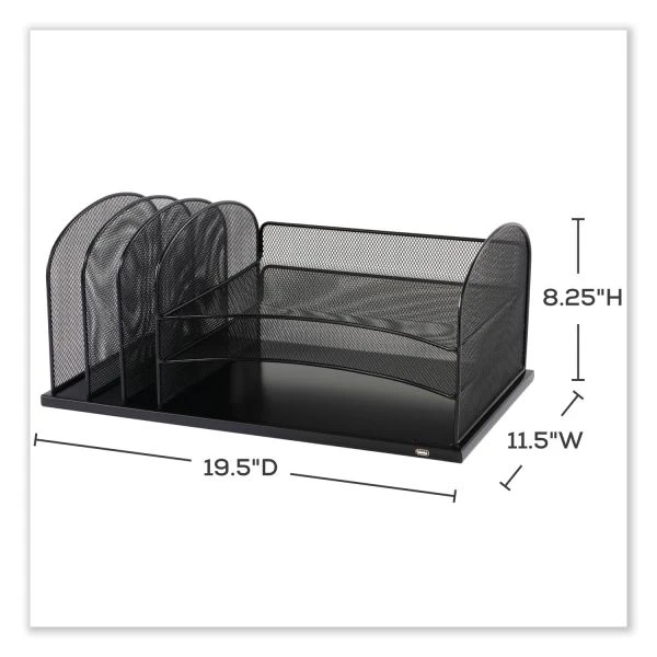 Safco Powered Onyx™ 3 Horizontal/3 Upright sections – Organizers feature a USB port to easily charge electronics. Organizers are durable, designed with steel mesh construction. The Powered 3 Horizontal/3 Upright Sections Organizer is a versatile filing center that is designed with three trays for letter-size documents and three large-capacity upright sections for file folders and binders. Includes USB cord and power cord to plug into wall. It features a steel mesh construction for durable desktop organization.
