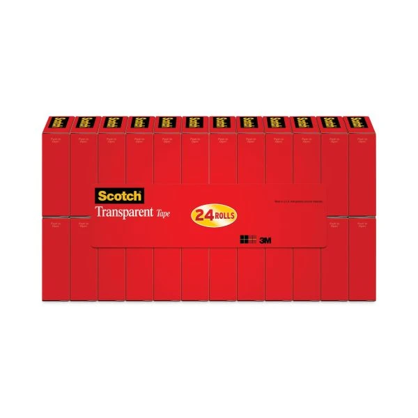 Scotch Transparent Tape, 1″ Core, 0.75″ x 83.33 ft, Transparent, 24/Pack – When you have a million and one things to do, there’s one tape to get—Scotch® Transparent Tape. It’s clearly strong—holds things together in an instant; keeps things together for a long time. Clearly multi-purpose—ideal for all the jobs you need to get done. And clearly…clear—using 3M adhesive technology, it goes on transparently and won’t yellow with age. Scotch® Transparent Tape Refills fit into all standard dispensers, glide off the roll smoothly, and cut easily-without wasted tape. Whatever you need to get done, wherever you are—home, work or school—Scotch® Transparent Tape Refill Rolls are clearly ready to go to work.