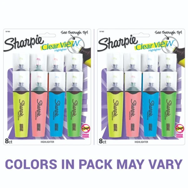 Sharpie Highlighter, Clear View Highlighter with See-Through Chisel Tip, Tank Highlighter, Assorted, 8 Count – See where you’re marking with the Sharpie Clear View highlighter! A see-through tip allows you to keep your eyes locked on the page and precisely highlight—you’ll always know where to stop! Meanwhile, the innovative blade-style tip lets you switch between both wide and narrow lines. Sharpie highlighters come with ultra-vivid ink that jumps off the page while resisting the smearing of many pen and marker inks, so your work stays clean.