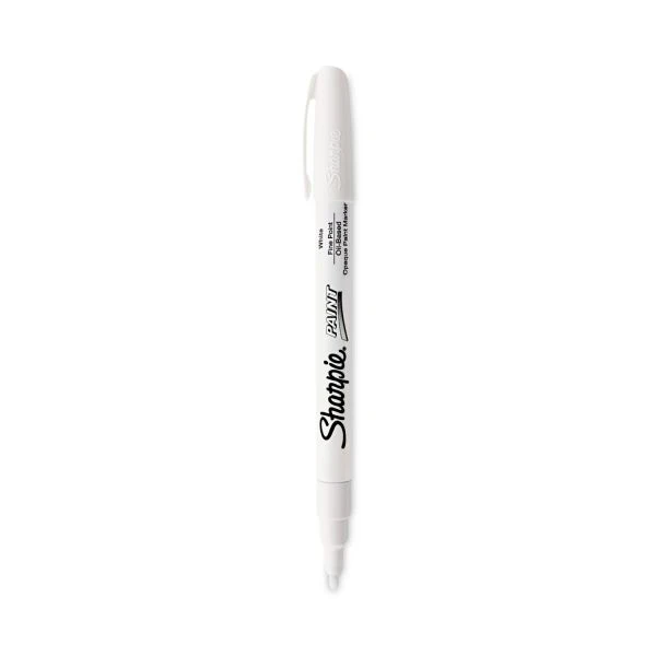 Sharpie Permanent Paint Marker, Fine Bullet Tip, White, Dozen – Oil-based opaque paint markers for marking on light or dark surfaces. For metal, pottery, wood, rubber, glass, plastic, stone and more. Quick drying, water-, fade- and abrasion-resistant ink. Xylene-free.