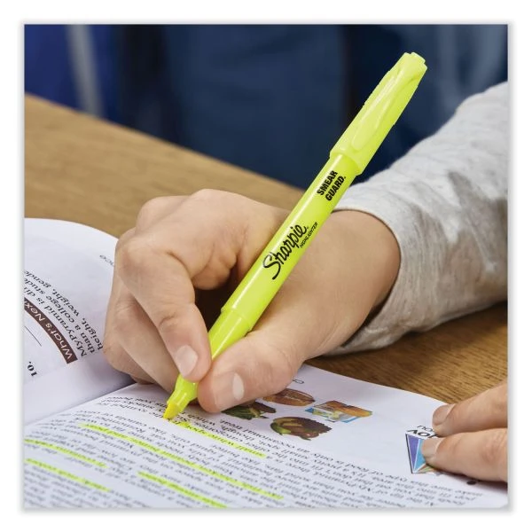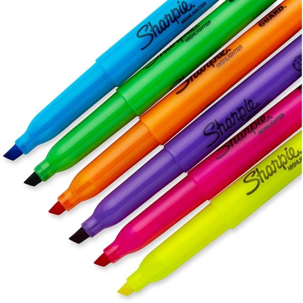 Sharpie Pocket Style Highlighters, Assorted Ink Colors, Chisel Tip, Assorted Barrel Colors, 24/Pack – Features SMEAR GUARD ink specially formulated to not smear when highlighting over many pen and marker inks including inkjet printouts, written notes, newspapers and more. Versatile chisel tip is great for highlighting or underlining. Quick drying, odorless ink won’t fade type or bleed through most paper.