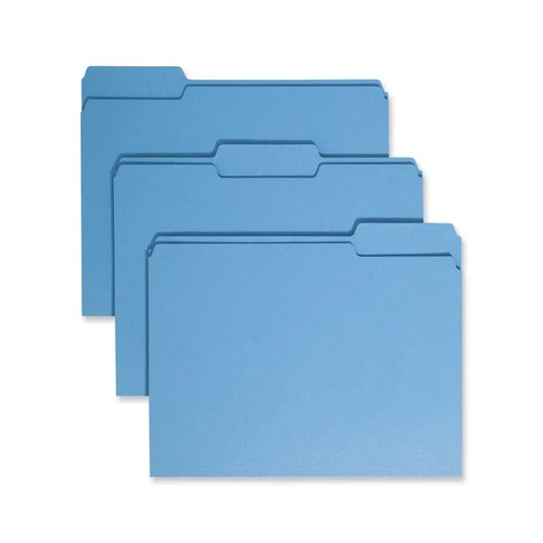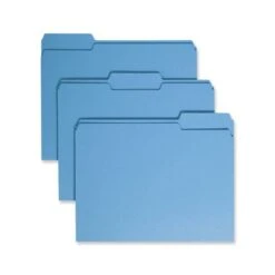 Smead Colored File Folders, 1/3-Cut Tabs: Assorted, Letter Size, 0.75″ Expansion, Blue, 100/Box – Top-tab folders are color-coded for easy filing and retrieval. Each features 11 point stock, one-ply tabs, undercut front panel and rounded top corners. 1/3-cut tabs are 1/2 high. Folders are scored for 3/4″ expansion.”