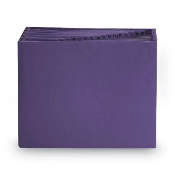 Smead Heavy-Duty Indexed Expanding Open Top Color Files, 21 Sections, 1/21-Cut Tabs, Letter Size, Purple – Desktop expanding file features 21 pockets with A-Z indexing and durable, quality construction. Each pocket expands to 7/8″. Full-height dividers display the alphabetic indexing on their two-ply tops. Double thick front and back panels have heavy reinforcement liner board. Expanding file also offers full-height matching color gussets with clear poly tape to reinforce the top.