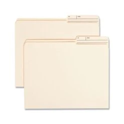 Smead Reinforced Guide Height File Folders, 2/5-Cut Printed Tabs: Right Position, Letter Size, 0.75″ Expansion, Manila, 100/Box – More durable than standard file folders, these file folders feature pre-printed tabs reinforced to provide the extra strength where you need it most. These long-lasting, 2/5-cut tabs make the folders ideal for organizing files or archives. Tabs are 1/2 high and 2/5-cut in the right position. Tabs also have two preprinted lines so you write information neatly. Sturdy, 11 point construction of the file folders protects documents. Corners are rounded in front and back. Letter-size, guide-height folders are also scored for 3/4″ expansion.”