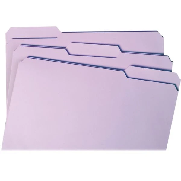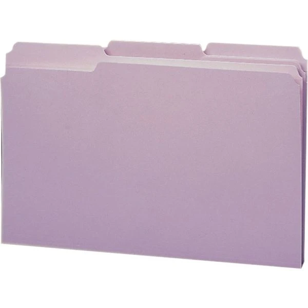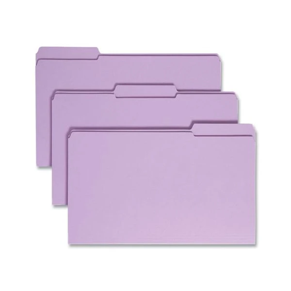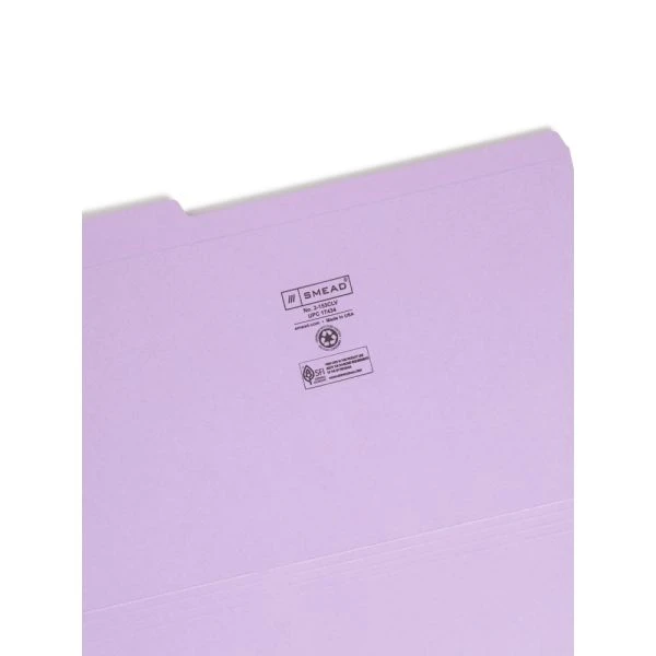 Smead Reinforced Top Tab Colored File Folders, 1/3-Cut Tabs: Assorted, Legal Size, 0.75″ Expansion, Lavender, 100/Box – More durable than standard file folders, these file folders with reinforced two-ply tabs provide extra strength where you need it most. Tabs are built stronger to last longer. 1/3-cut tabs come in assorted positions to help reduce filing and retrieval time. Use these colorful folders to categorize different types of folders or to complement your company colors or decor. Acid-free, legal-size folders are made of 11 point stock.
